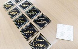 この素材で製造する場合、透明なシートに疑似接着で仕上がるため資材管理が容易にできるところがメリットです。